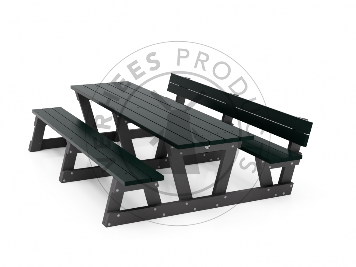 De picknicktafel bestaat uit één tafel met twee zitbanken met leuning en een lage instap, waardoor hij toegankelijk en gebruiksvriendelijk is. Dankzij de stevige constructie staat de tafel stabiel op elke ondergrond en is hij rot- en splintervrij, bestand tegen intensief gebruik en geschikt om het hele jaar door buiten te blijven staan. De Parijs picknicktafels zijn ideaal voor scholen, sportparken, bossen, gemeenten en andere buitenruimtes. Door gerecycled materiaal te gebruiken, krijgt het kunstgras een tweede leven als weerbestendig, onderhoudsarm en robuust buitenmeubilair, perfect voor elke buitenomgeving.