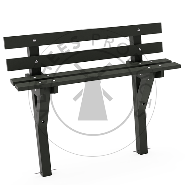 Het zitvlak bestaat uit twee staalversterkte planken (40x120 mm) en de rugleuning uit twee planken (40x120 mm) van gerecycled kunstgras.