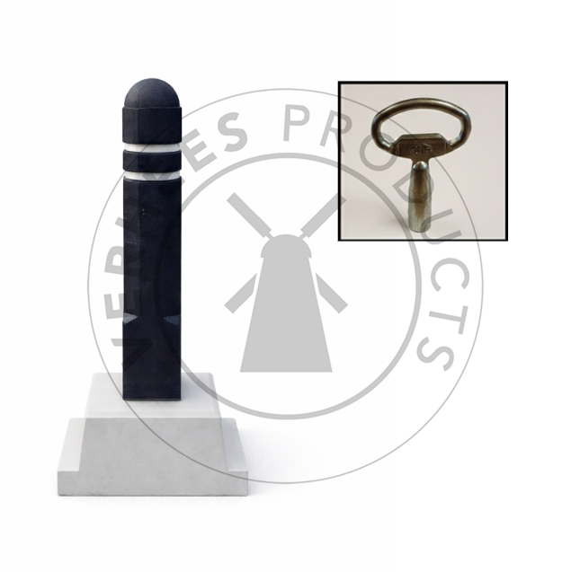 Kunststof Achthoekige Afneembare Verkeersafzetpaal/Anti-Parkeerpaal type Gent met achthoekige bolkoppaal met veilingkanten, 2 reflecterende witte banden inclusief betonvoet met sleutel. Zonder een stevige buis.