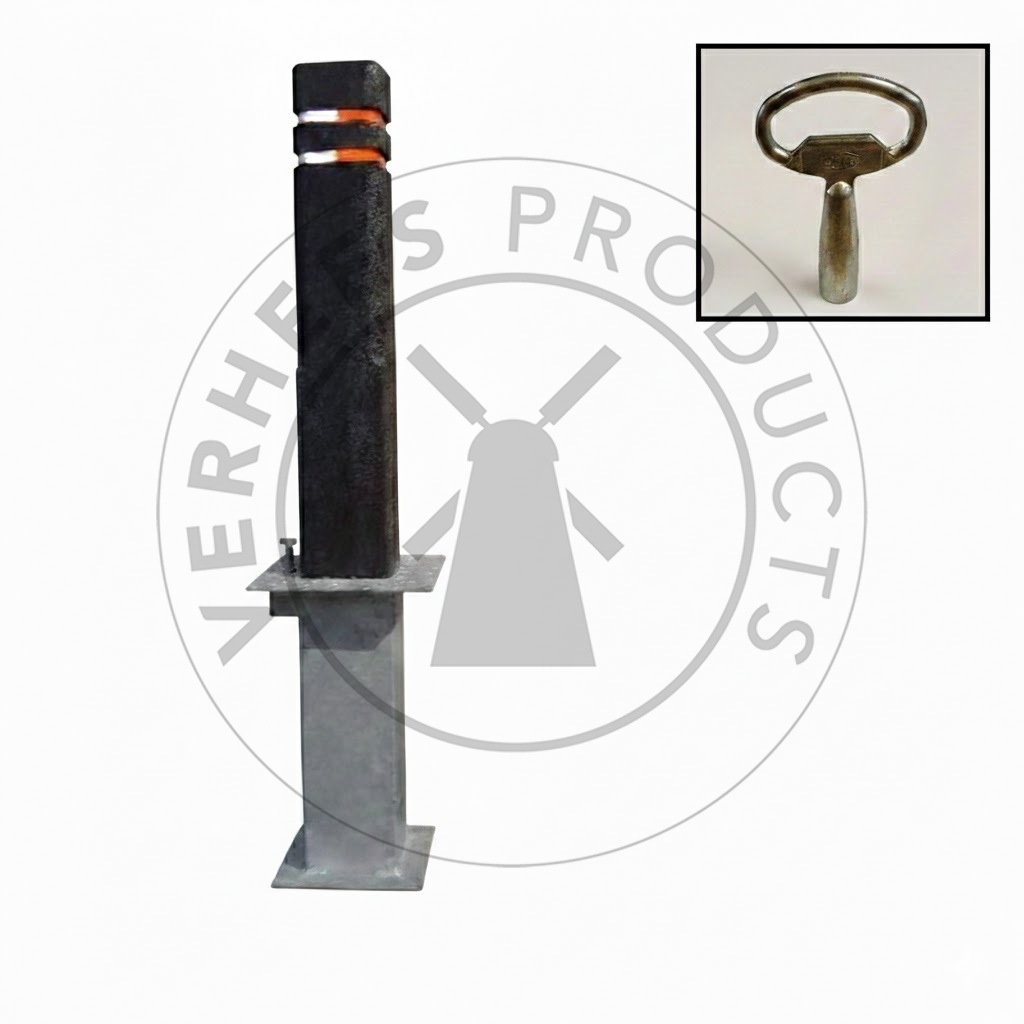 Uitneembare verkeer afzetpaal, inclusief grondbus en sleutel.