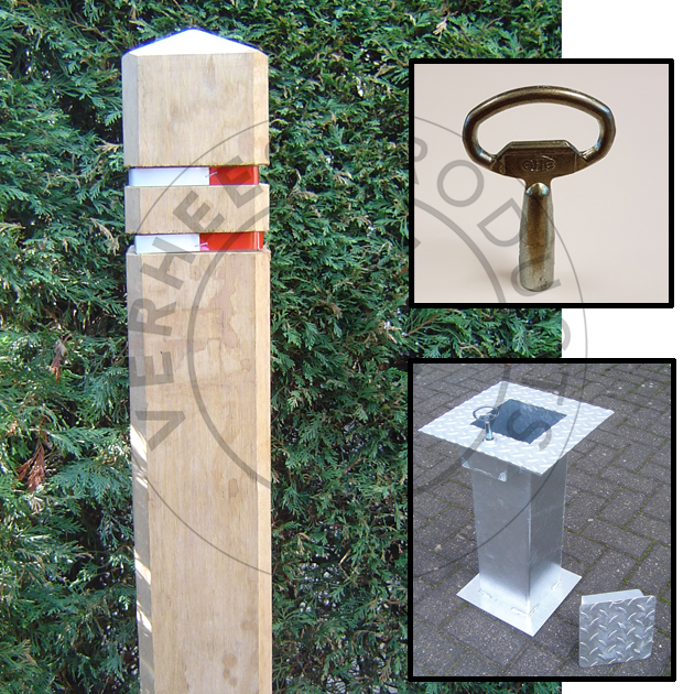Verkeer afzetpaal uitneembaar met grondbus en sleutel.