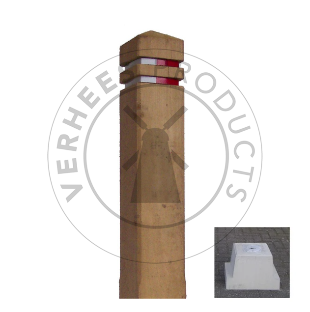 Verkeer afzetpaal afneembaar met betonvoet. Maat 1400x140x140mm