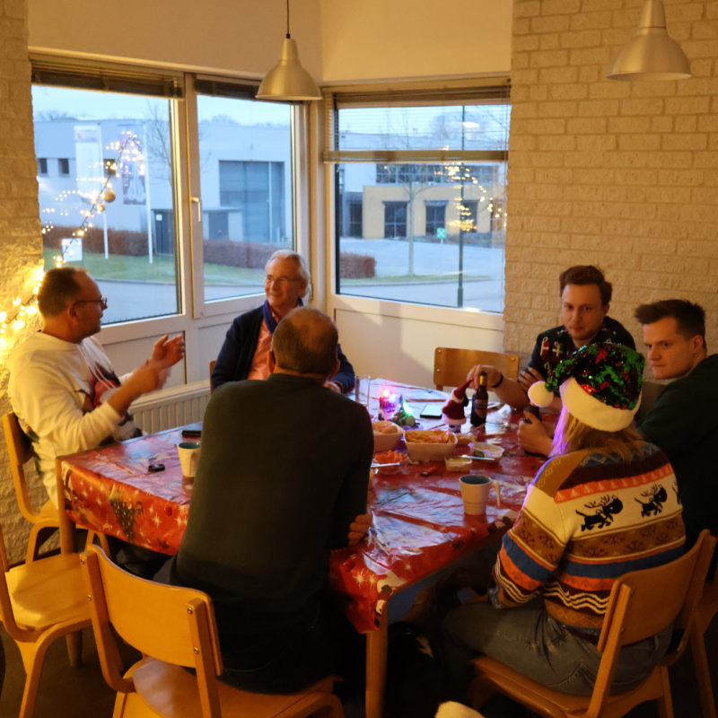 Tijdens de kerstborrel vierde het team samen het jaar, onder het genot van muziek en een gezellige sfeer. Het was een mooi moment om terug te kijken én vooruit te blikken op het komende jubileumjaar.
